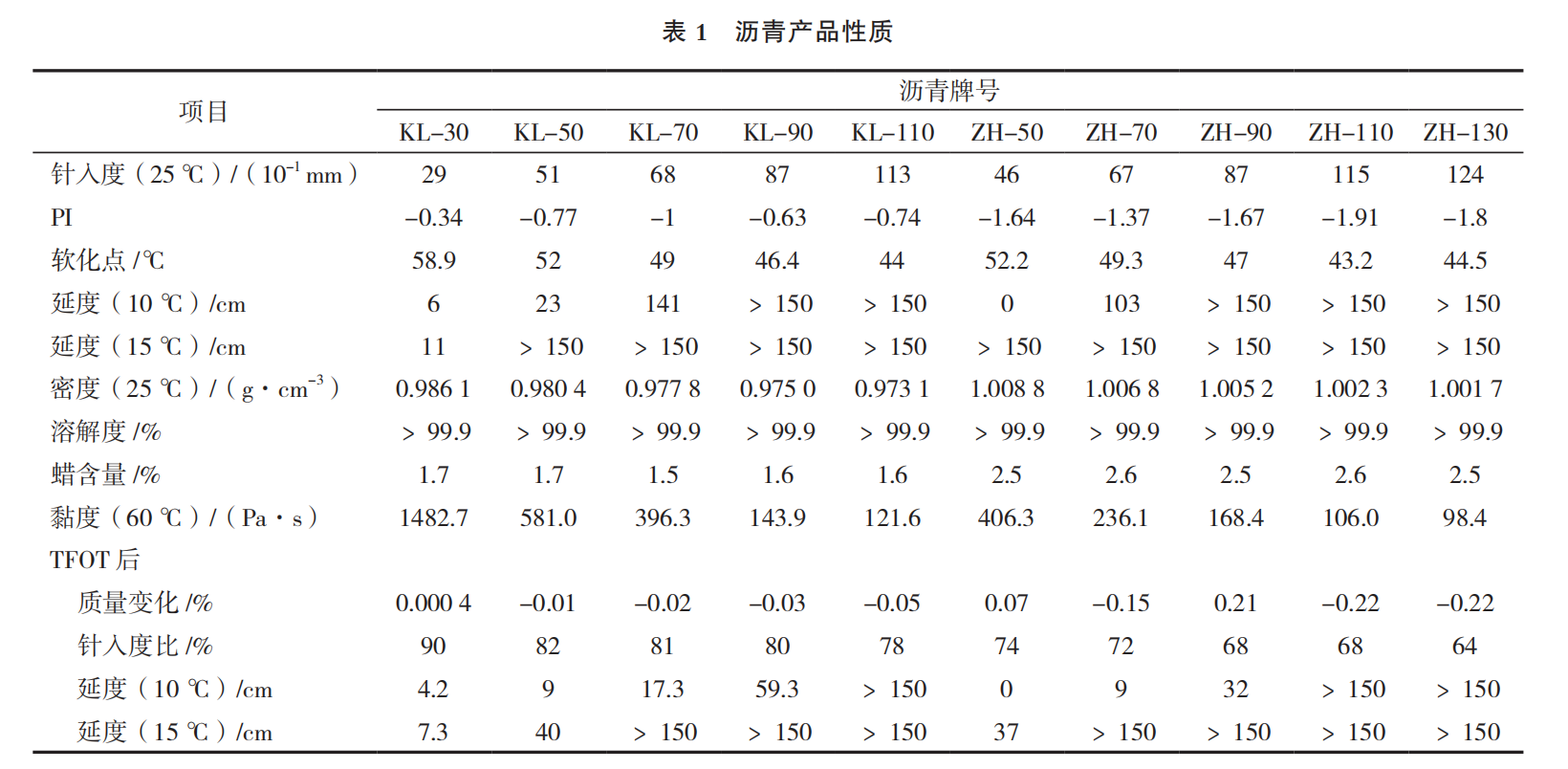 哥 200 #道路瀝青的針入度指數(shù)為 0,提出 并制定了針入度指數(shù)(Penetration Index,簡稱PI)的概念和計算方法,其